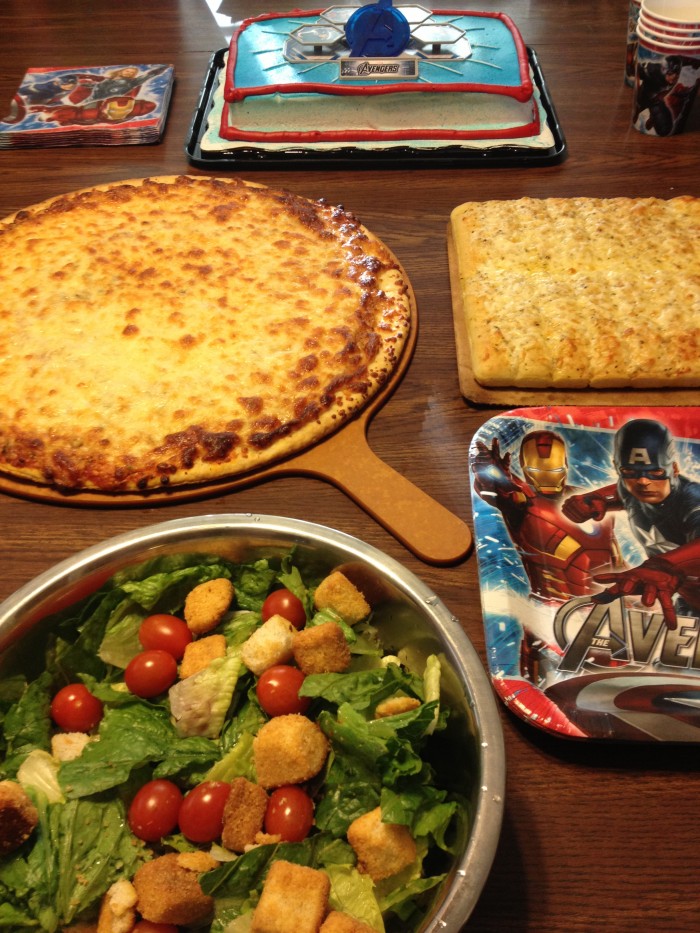And a party isn’t a great party without some FOOD! With all the different dietary restrictions of those in attendance, it was the 5-Cheese Marketside pizza that went over the best. Add in our Marketside brand Lite Ceasar Salad and Cheesy Bread too? Well, that just made it a feast fit for Super Heros! By the time we were done, you pretty much had to roll us all away from the table. {LOL}