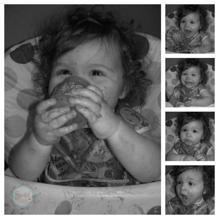 I have a four-year-old unknown and I can barely keep up with mess! I’m washing out chalk on the patio and using lemon oil to get the crayon off furniture and walls. And that isn’t the bleach I’m using on my poor {unsuspecting} white couch that doubles as a climb-on canvas. But that is just cleaning the house. You should see what the kid looks like after a fun-filled food finger-painting session!