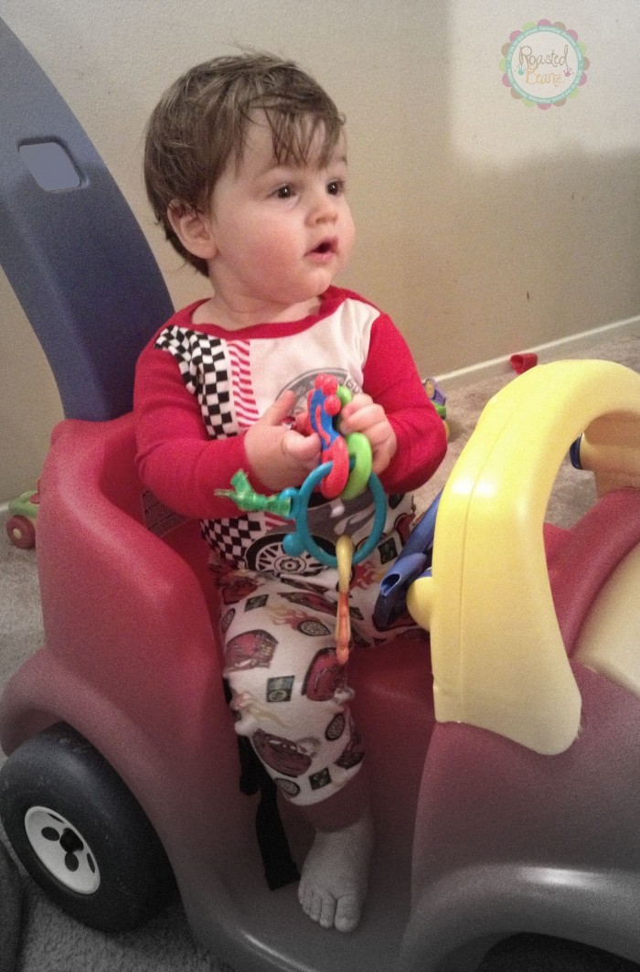 Otis is in full-on teething mode. {And lets just say he doesn’t like it one bit!} So these keys offer a fun, funky, and great way to introduce textures to those sore gums. Perfect for little fingers, he not only loves to gnaw on them but to play with them too. As his collection of great car-themed goodies grows, these were spot-on for adding to his favorites!