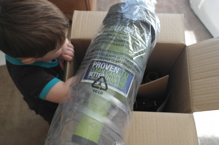 So the first order of business when we got home with it, was cracking that box open. I of course, had lots of help to inquire at the parts that stared back at me. It didn’t look too hard to whip together. We laid all pieces out and my Husband had it assembled in five minutes flat. In fact, here’s a quick YouTube video that illustrates more about the vacuum and how to the Eureka AirSpeed One Turbo together.