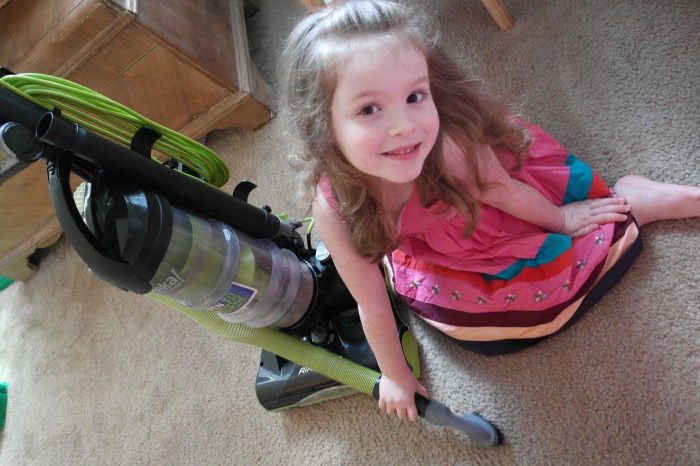 I was so happy speeding about with my Eureka AirSpeed One Turbo power that I my daughter couldn’t wait to test it all out too. Her favorite pick for the attachment is the duster brush. She got a kick out of dusting the TV with it. However this is going to come in quite handy for the blinds, baseboards, and window coverings. So just before we packed it up for the day, she wanted to share a picture of it too.
