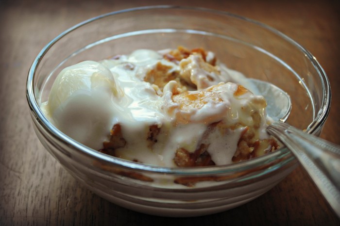 But this isn’t about the pie people. Its about the slow churned creamy ice cream that is slowly melting while being drizzled over top with real Eggnog. The result is an amazing soupy, {holiday inspired} comfort food masterpiece. We even go a step further and grind cinnamon and sugar over top. Seriously, if you pour milk over your ice cream on a routine basis, this dessert is right up your alley.