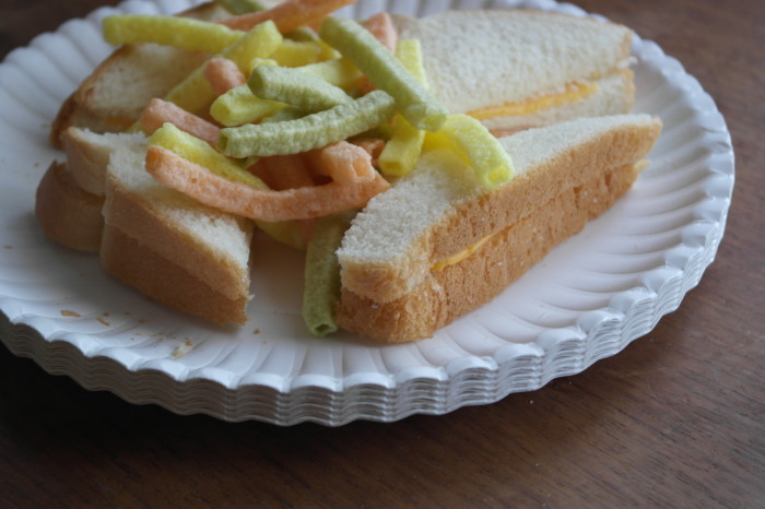 Because maybe this IS what she’ll remember most one day. Paper plates and sunny afternoons. Colorful juice bottles with the fun little spouts. Buttermilk ranch covered carrots. Smeared butter inside soft bread slices to sandwich a slice of american cheese between. And the fact that there must be a crust left behind, whether I’ve cut it off or not.