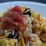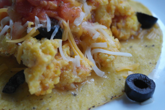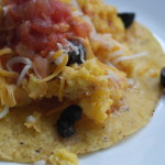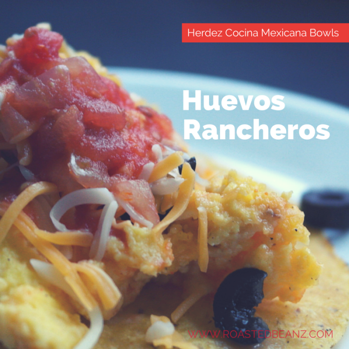 I don’t know about you, but its great to see frozen meals that are authentic. Its even better when that meal even looks good coming out of the microwave. A true meal by itself, this Herdez Huevos Rancheros meal is the perfect fast and easy breakfast for you. I cooked it up, spooned it on a crispy tostada. Then I raided the pantry to add some fresh ingredients like olives, shredded cheese, and Herdez salsa.