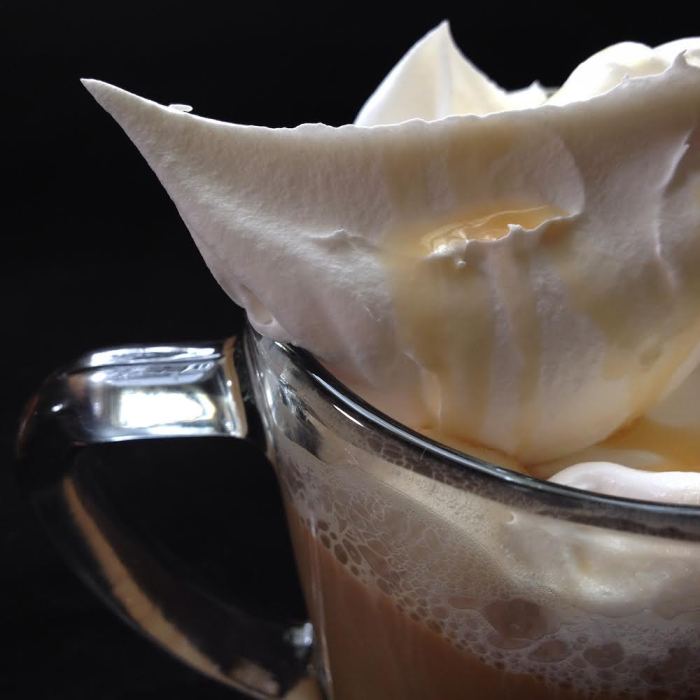 After building your new coffee concoction – its time to top it with the Cool Whip! Now…I’m quite partial to freezing the cool whip and using cookie cutters for an impromptu marshmallow. But on this glorious day, I yearned for it to crown my coffee complete with caramel syrup. Then as it melts, you’ll lightly sweeten your drink even more.