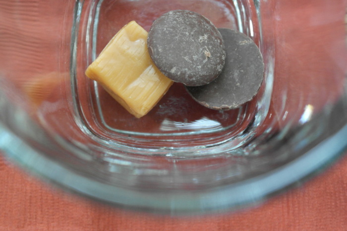 So, to get started? Unwrap a Kraft caramel and toss it into the bottom of your mug. What a classic golden treat isn’t it? And I’ve found its the perfect addition to lightly sweetening my coffee. Another pantry favorite? Bakers Chocolate. Not just for shaving or candy molds – we love the “dipping chocolate” as well. And when we aren’t coating every fruit we buy in chocolate…I of course put it in my coffee. {LOL}