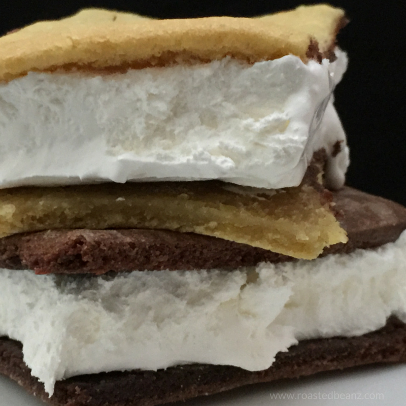 Next, it was time to bake the cookie. And one of the best parts about the new Nestle Toll House cookie dough sheets? Is the fact that there are not only one, not just two, but three different flavors! Here you see the Sugar Cookie and Chocolate varieties. I used a pizza cutter to slice the dough and also to score lines into the cookies before they baked.