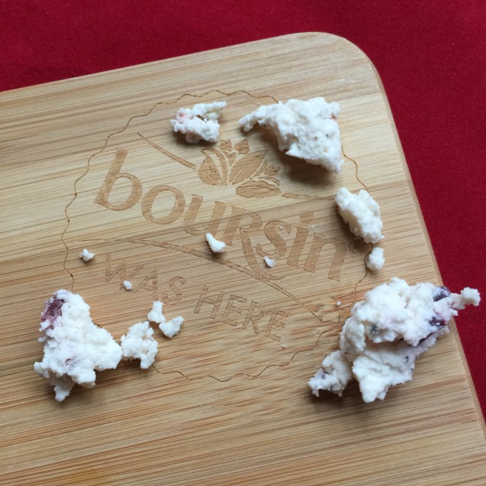 So just what is this “gournay” cheese variety? I liken it to a texture like Feta but with a creaminess of cream cheese. But once you try it, you’ll see that Boursin is in a category all its own. Even the kids adore it. And the flavor! Mmmm.