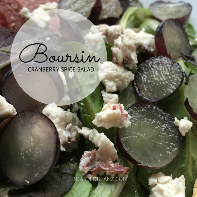 Not just for crackers either, I love spreading the Garlic & Herb Boursin on my morning bagel. Plus, this Cranberry Spice is divine in a salad. Pairing perfectly with light fruit as well as the beef. A fig walnut dressing completed this match made in heaven.