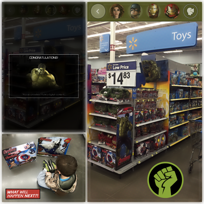 We also unlocked special Super Heroes Assemble app features in the Toy aisle. The Hulk was guarding a treasure trove of fun Avengers: Age Of Ultron goodies. My daughter found a Captain America Flying Heroes toy right away. But it took my youngest a quick Eeeney-Meeney-Miney-Moe to discover what he really wanted. A quick glance up to find a Huffy Marvel’s The Avengers Scooter.