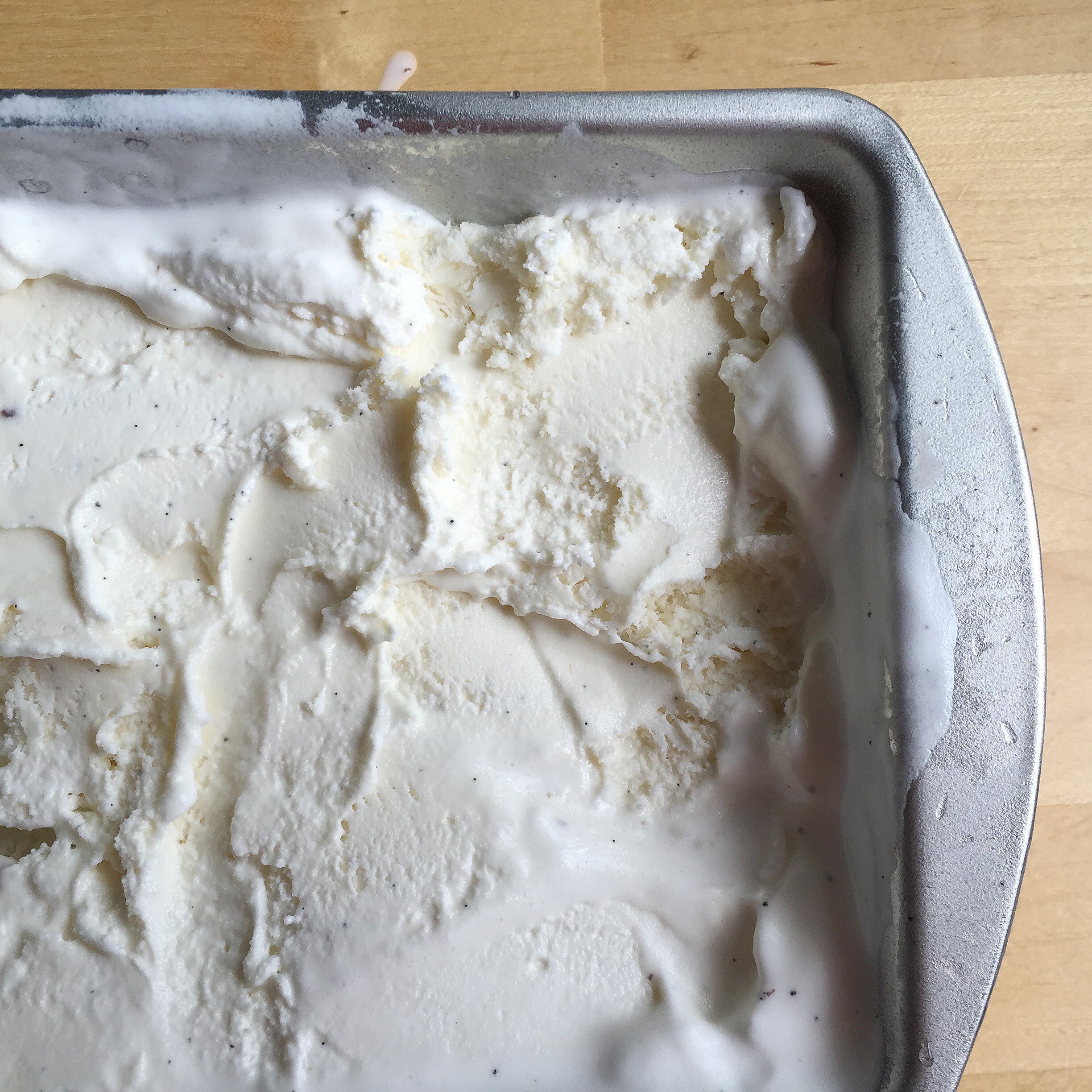 First, we start any sundae fundae off with vanilla bean ice cream. Let it sit out to soften just enough to slide out and press into a 9×5 bread pan. Then slide it back in the freezer for 30 minutes to harden. Do note, you will want to leave it out for about 15 minutes prior to serving. So you get to do the math on that one.
