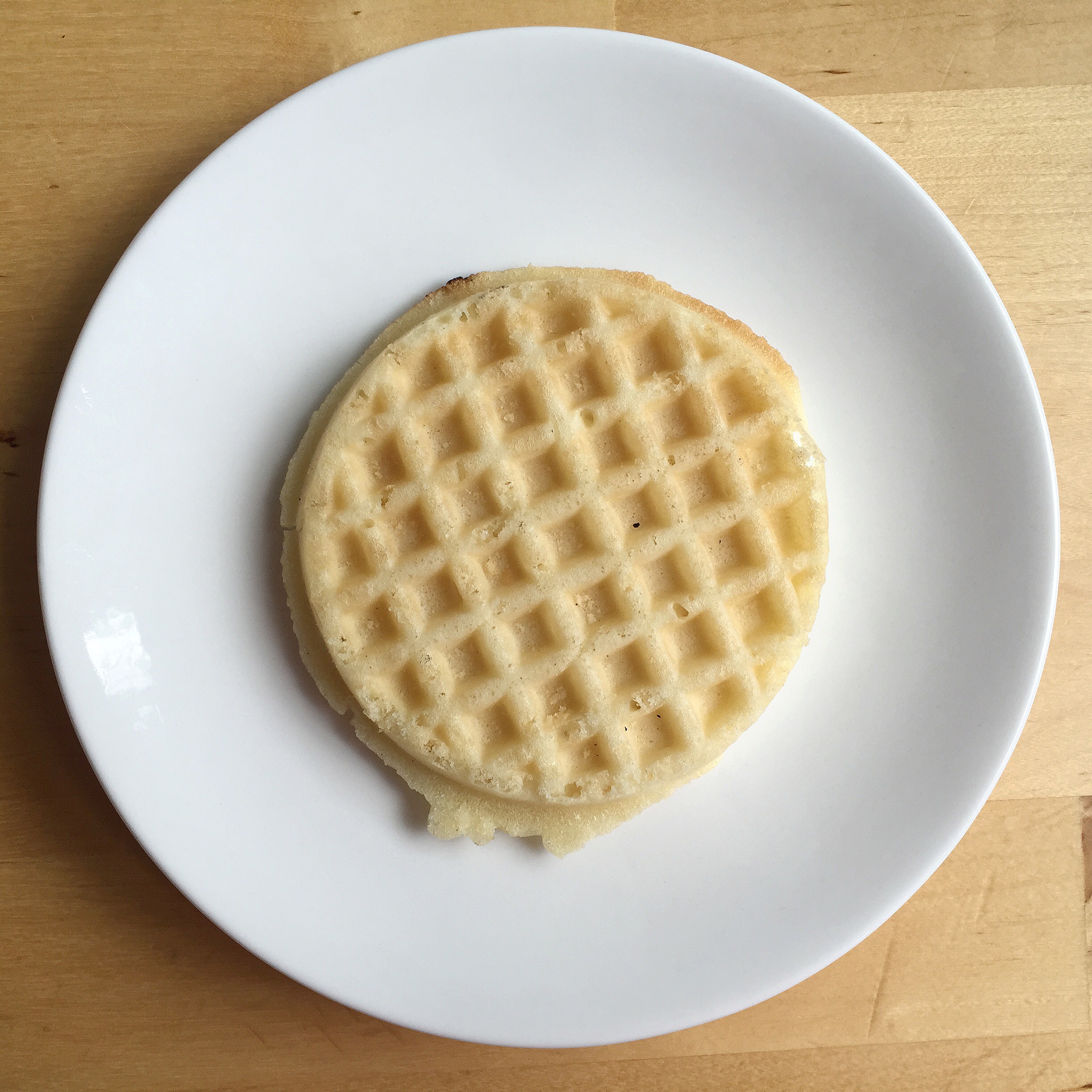 To begin, we start by plating our ready-made waffle. Simply pop it in the microwave for 15-20 seconds. You won’t want it steaming hot. Rather you’re just warming it enough to be readily edible.