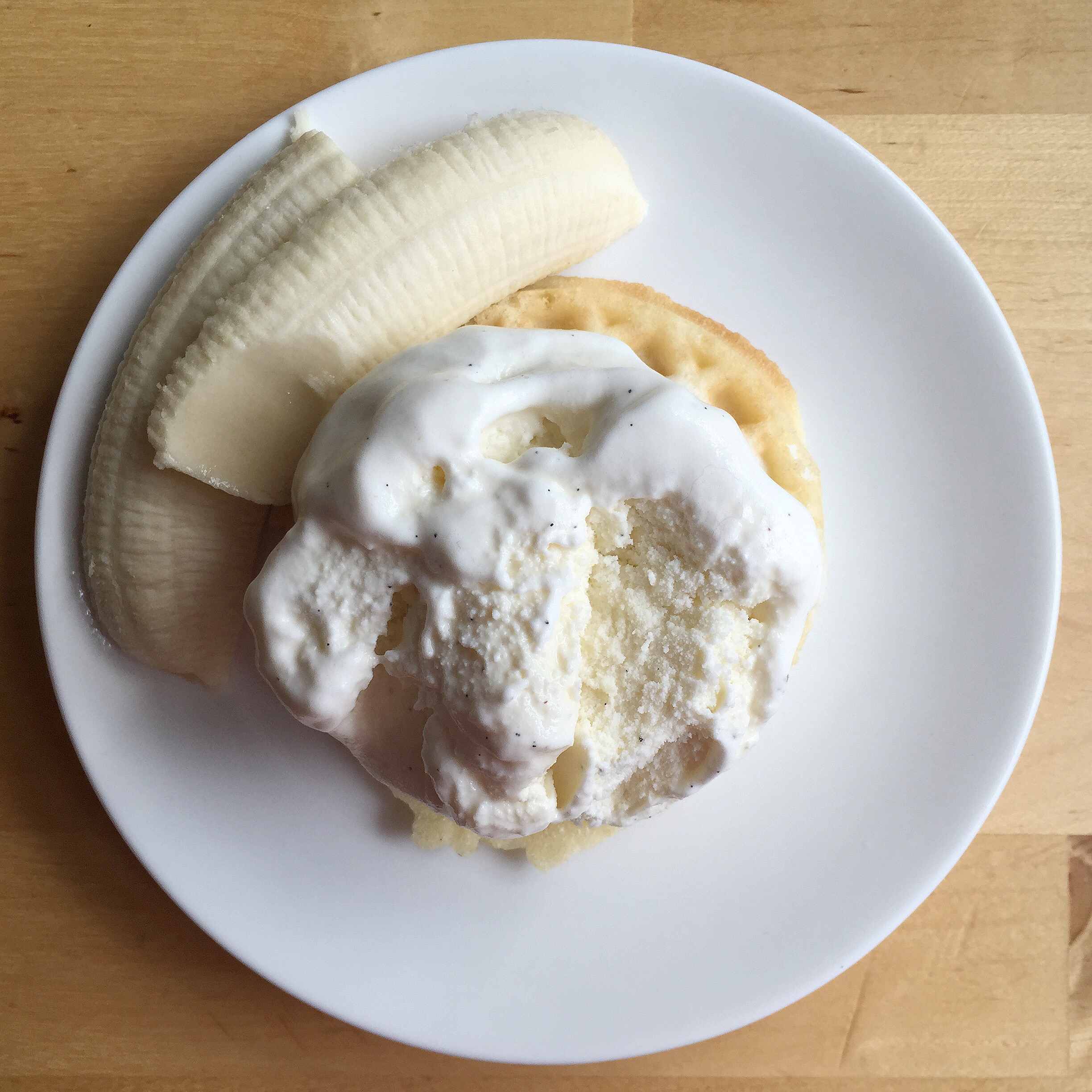 Back in July I posted about how much we love stocking up on classic sundae toppings. And as promised, here’s one way I love to ante up our banana split. Lets hope you like waffles with your ice cream!