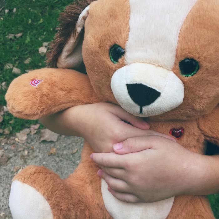 First introduced by commercial, the kids were quick to spot CloudPets™ while shopping at our local Walmart. After checking out the Kitty, Unicorn, and Bear, they settled on adopting the Puppy. And with that, we were set to welcome {the newly christened} Huggsie-Heart home.