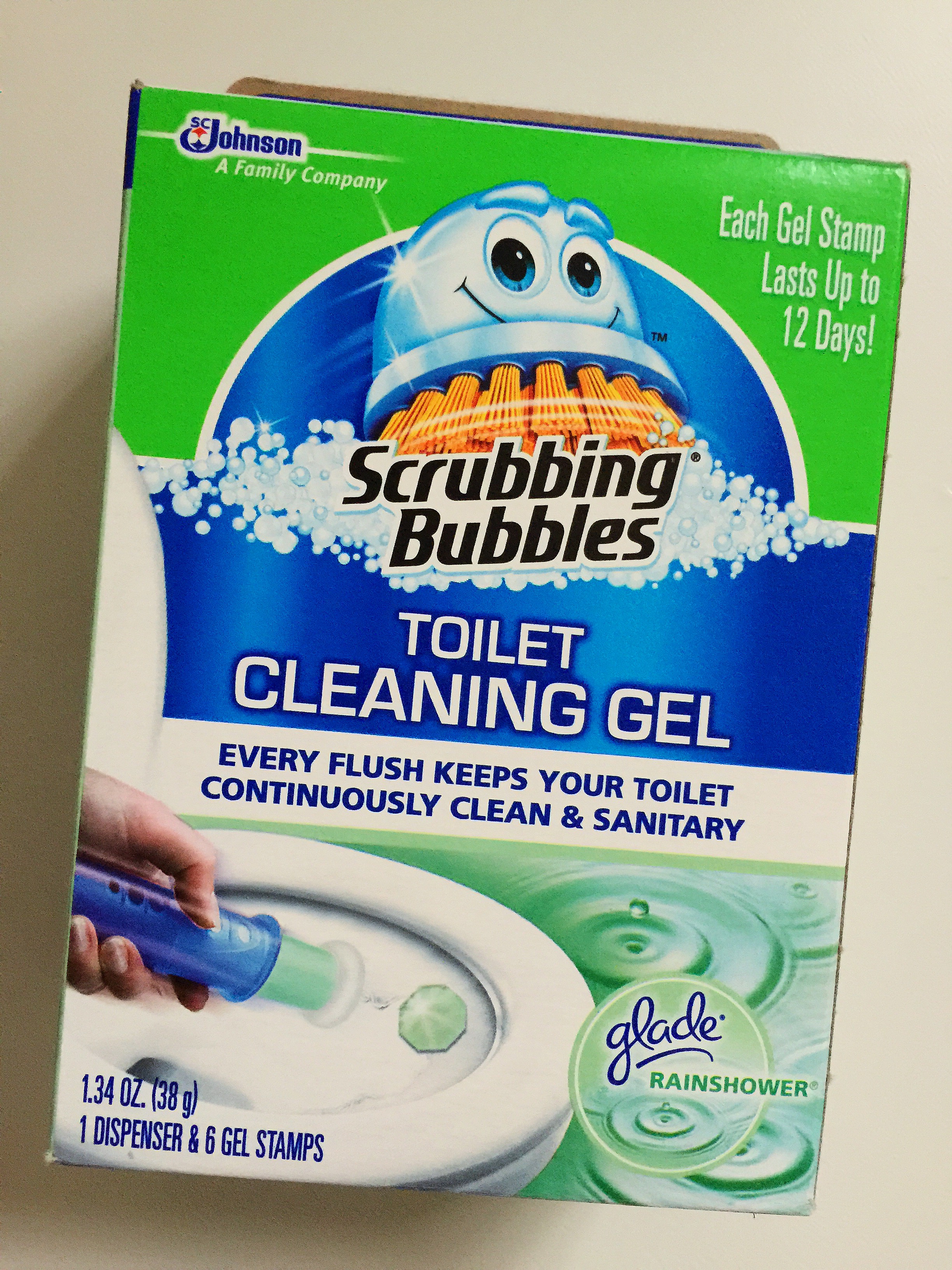 After a quick wipe down, make sure to stamp in the Scrubbing Bubbles® Toilet Cleaning Gel. This toilet bowl cleaner gradually dissolves with each flush; allowing a controlled release of cleaning solution and fragrance. You’ll love the Scrubbing Bubbles® Toilet Cleaning Gel with the Glade® Rainshower® scent.