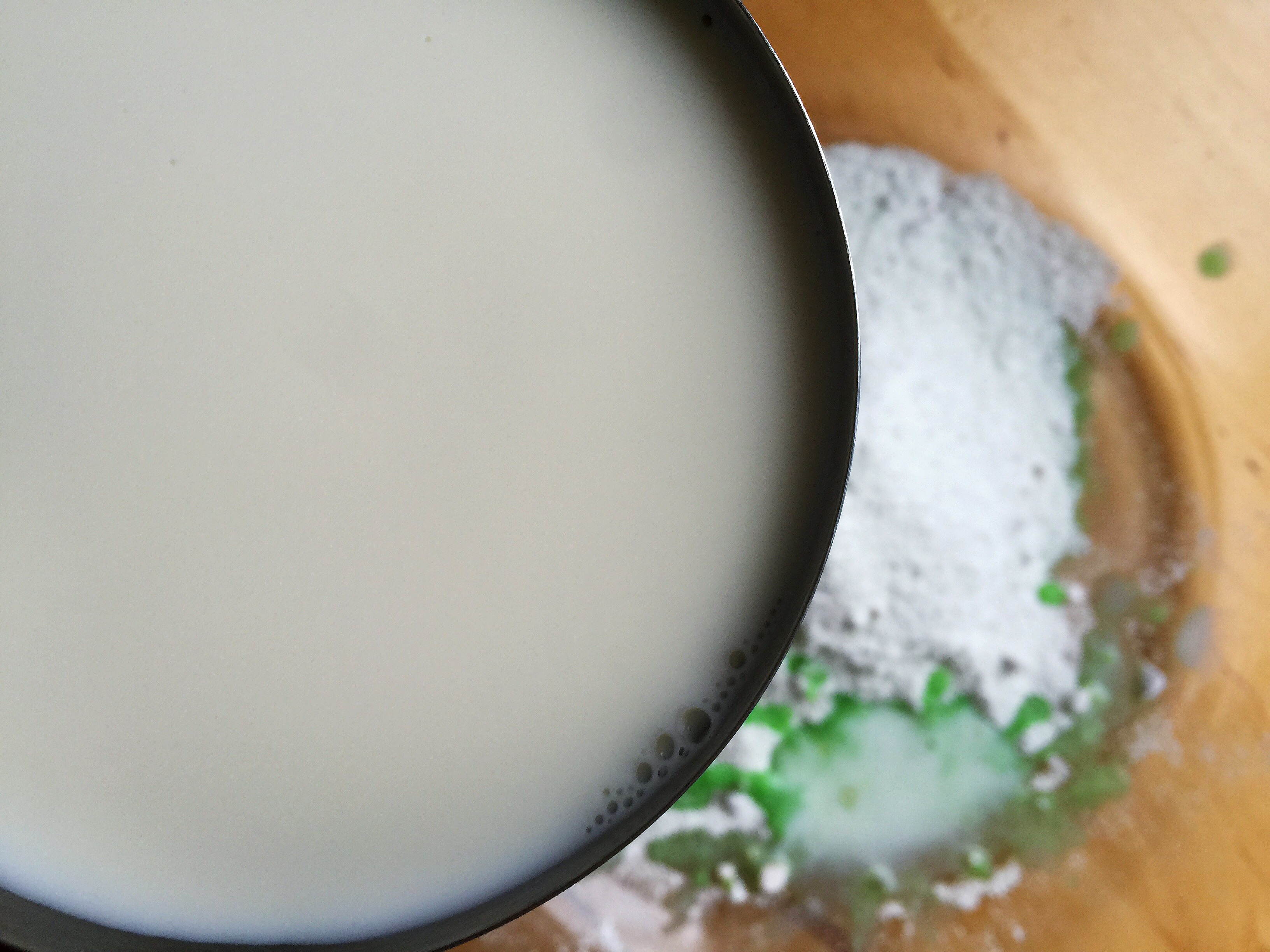 Now that we have everything set out. I grabbed a big mixing bowl to whip up my Pudding Pie filling. Starting with the Pistachio Pudding, I added 1-1/2 cups milk to 1-1/2 packages of Pistachio Pudding. If you want to make two pies, then double the milk and combine with 3 packages of Jell-O Pistachio Pudding.