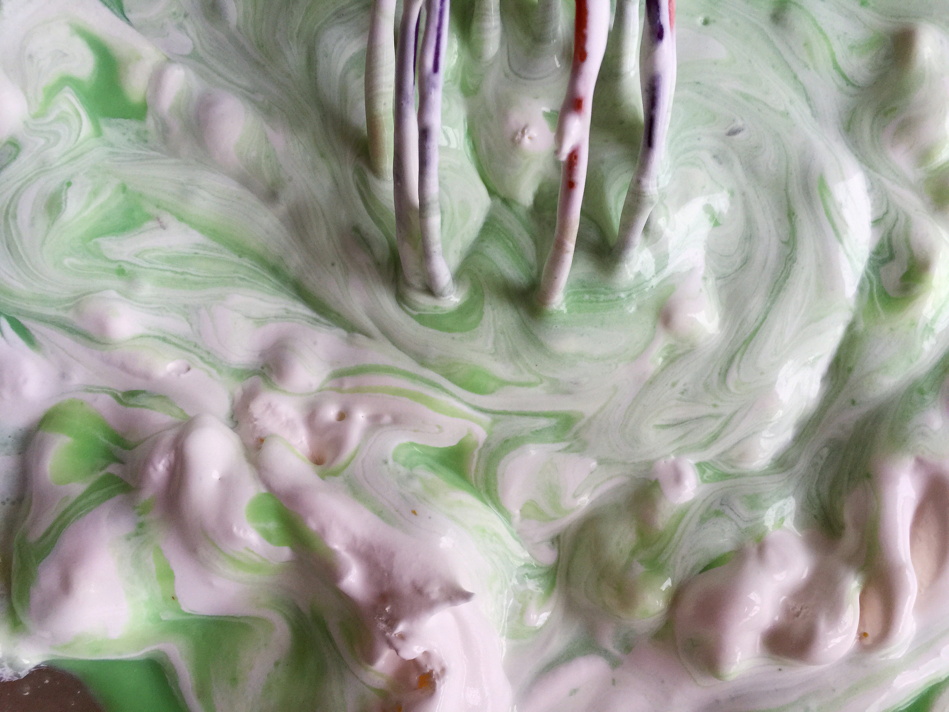Once mixed, you’ll need your Kraft Cool Whip. Remember it needs to be thawed. Then whisk in half of the 8oz tub.