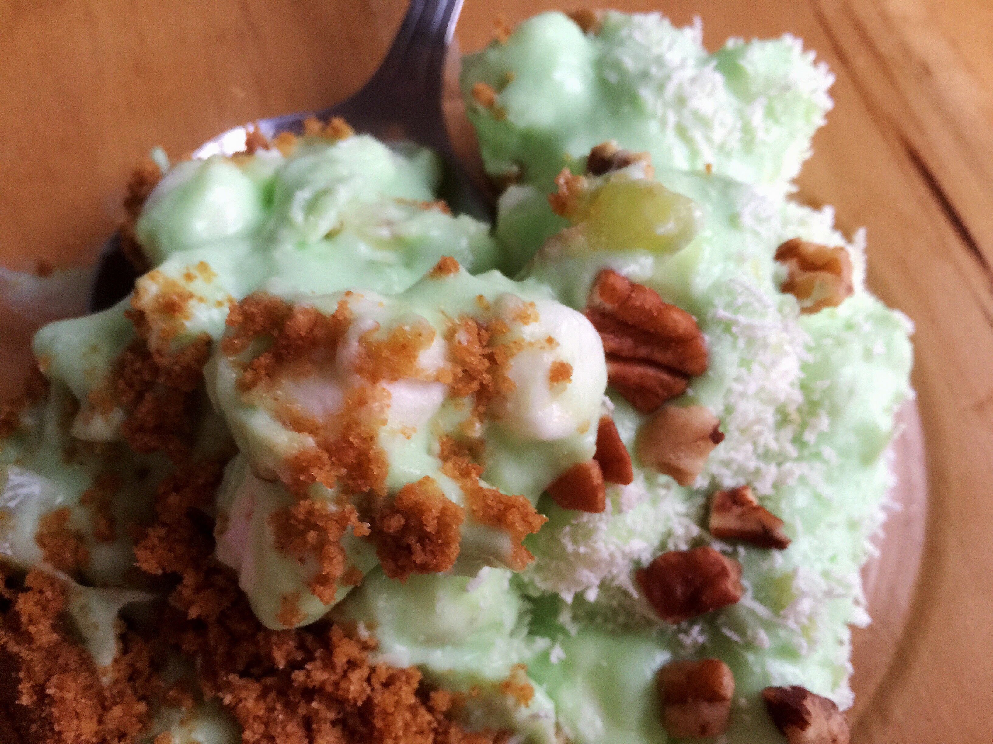 Its important to note that there are so many ways to make Watergate Salad aka Pistachio Fluff. The ingredients listed here just happen to be my favorites. But it would be this point that you would add anything else like coconut flakes or drained fruit salad.