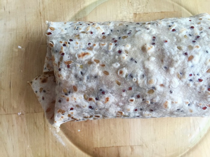 Since I do like a good scramble, I let my egg cook up another 5 minutes. And then I’m ready to prep my tortilla and pour all this hot deliciousness into the center. With a quick fold, I wrap up my breakfast and can be out the door!